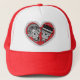 Dia de los Muertos (Day of the Dead) sugar skull couple set on a red heart with white flowers.