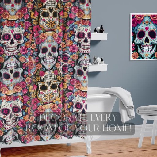 Smiling Dia de los Muertos - Day of the Dead or Halloween design with skull and flowers.