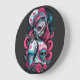 Sugar Skull Girl with Pink Highlights and Roses Large Clock