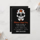 Cool Halloween party invitation done in black, with graphics of a white sugar skull with orange and black flowers, at the top. Personalise the white and orange text fields for your All Hallows Eve party. Matching paper napkins, paper plates, paper cups, and other party supplies are available.