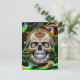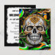 Personalised Halloween Party Invitation. Black, orange and blue sugar skull Halloween postcard invitations.