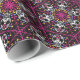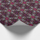 Wrapping paper printed with colourful kaleidoscopes of grinning sugar skulls and spider webs. For fun Halloween birthday, or day of the dead.