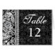 Sugar Skull & Lace Wedding Table Number Cards. Intricately detailed right down to the last flourish. Graphics include a black background with a damask pattern, lace edging with black and white stripes. Unique and very classy yet with an edge to them, these fancy damask lace Table Number Cards Cards are truly one of a kind and great for any wedding and especially great for that theme wedding, offbeat bride or day of the dead wedding!. COLORS CAN BE CUSTOMIZED AT YOUR REQUEST VIA MY CONTACT BUTTON IN MY STORE (TOP LEFT). I am happy to design any other products that you need for your wedding or event based off this design as well, table cards, seating charts, posters etc.