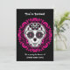 My version of an artistic sugar skull in white, hot pink, and black with lots of elegant accents on 5x7 invitations to personalise easily.
