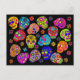 Mexican folk art sugar skulls postcard. Background colour can be customised.
