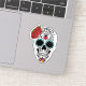 Fun and festive female sugar skull sticker featuring a traditional Sugar Skull with Red roses on her head
