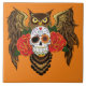 Sugar Skull Roses Owl Ceramic Tile