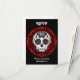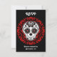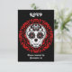 An artistic and cute sugar skull in white, red, and black with lots of elegant accents on RSVP cards to personalise for any occasion.