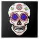 Sugar Skull With Blue Eyes and Green Fleur de Lis Tile
