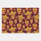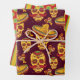 A festive sugar skull day of the dead design with corresponding stripes and polka dots.