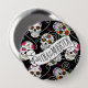 A colourful button design for Day of the Dead festivities, featuring a variety of decorative sugar skulls with flower and swirl accents on an optional black background. If you prefer a plain skulls pattern, the provided 'Dia de los Muertos' text layer can be deleted. Search ID725 to see other colour choices and products with this fun pattern.