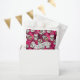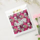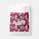 A colourful favour bag design for Day of the Dead festivities, featuring a variety of decorative sugar skulls with flower and swirl accents on an optional textured-effect rose red background. If you prefer, the 'Feliz Dia de los Muertos' text layer can be deleted for a pattern-only design. Search ID725 to see other colour choices and products with this fun pattern.