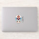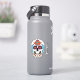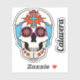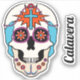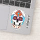 The graphic artwork on this contoured sticker features an illustrated sugar skull, or calavera, decorated with beads and flowers as well as a Christian cross on each forehead. There is also a separate text sticker that may be personalised.