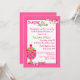 Pretty Sugar and Spice baby shower invitation with a candy buffet theme. Pretty pink card, with a white rectangle text area is decorated with graphics of whimsical pink and green candy dish and gaily wrapped candy. Text in pink and green is ready to personalise for your special event.