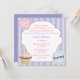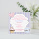 Sweet girl's birthday party invitations done in periwinkle blue and off white stripes, with a white cut out of a cupcake as the text area. Graphics of a pretty pink cupcake and heart decorate the front. The back of the invitation is done in solid periwinkle blue with graphics of a pink envelope with graphic text reading You're Invited. Personalise the pink and blue text, on the front, for your daughter's special day.