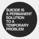 SUICIDE IS A PERMANENT SOLUTION TO A TEMPORARY PRO CLASSIC ROUND STICKER