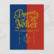 Suicide Squad - Property of Joker. Orange lettering with red and blue background.
