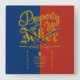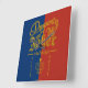 Suicide Squad - Property of Joker. Orange lettering with red and blue background.