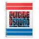 Red and Blue Suicide Squad logo with characters seen inside each letter.