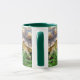 Photograph of pet Sulcata tortoise, Edwina Sulcata, grazing, mouth open, in grassy lawn. Image printed on both sides of mug. Mug colour, size and style are customisable.