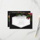 Lush floral arrangements in bright, warm colours ranging from coral and rose pink to golden yellow combine with vignetted, obsidian backgrounds to give the pieces in this elegant wedding suite a dark, moody ambience. This wedding RSVP card features floral borders around a hexagonal frame to hold all your reply requirements. Search ID829 to see the complete collection.