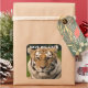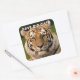 Square sticker with an image of a handsome Sumatran tiger and an important optional message.