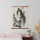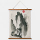 Sumi-e mountains with monastery and monk hanging tapestry