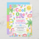 ☀️🌸 Celebrate your little sunshine with this adorable Cool One birthday invitation! Featuring bright watercolor artwork — smiling sun, a unicorn pool float, sweet treats, watercolor pool floats, tropical flowers, and sunny vibes — this summer birthday invite is perfect for a fun day in the sun! 🌈🦄