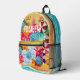 Your first name on the front of this custom backpack featuring a pattern of colourful umbrellas, waves on a sandy beach and sunbathers, fun to create one for every family member or give as a gift. MATCHING items in our store.