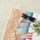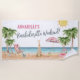 Coastal Summer Watercolor Bachelorette Tropical Beach Towel. A cool watercolor beach theme with shades of pink and teal, setting the vibe for a beach escape with the bride and her besties. From trips to Florida, California, or even something more international like Mexico, Hawaii or The Bahamas, this girls weekend is going to rock! Cute pink and white beach chair, umbrella, and a girl lounging in the sun. Palm trees swaying, shells to collect—it's all about those chill tropical beach vibes. With modern fonts adding a stylish twist, it's the perfect look for your bachelorette weekend. Just you and your crew, making memories against a backdrop of sand and sea. Check out all of the coordinating pieces too!