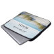 Laptop sleeve featuring an image of dunes overlooking a beach and ocean on a peaceful sunny day.