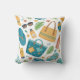 Vibrant seamless summer pattern throw pillow featuring straw hats, sunglasses, tote bags, sunscreen, flip flops, tropical leaves, and flowers on a clean white background. Ideal for beach lovers, vacation fans, tropical style enthusiasts, and anyone who loves sunny summer aesthetics.