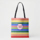 Summer Beach Fun Rainbow Stripes Monogram Tote Bag