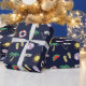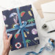 Dark blue holiday themed gift wrap with colourful illustrated beach collage.