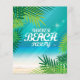 Summer beach party design with palm trees and sparkles in the background.