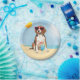 It’s a dog’s life! Be cool and celebrate the dog days of summer with this cute Beagle wearing sunglasses and relaxing with a drink.