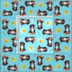 It’s a dog’s life! Be cool and celebrate the dog days of summer with this pattern of cute Bernese Mountain Dogs wearing sunglasses and relaxing with drinks among suns and more drinks.