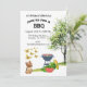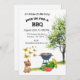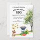 Get ready for your backyard birthday barbecue with this invitation featuring fluttering butterflies, a friendly dog, a towering tree, and a sizzling grill.