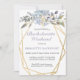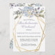 Soft blue flowers within a gold double geometric frame feature botanical leaves and feminine flourishes. Customise this bachelorette weekend getaway invitation with your own colours and fonts or keep this popular typography as it is for your convenience. MIx and match with other items in this beautiful wedding collection.