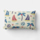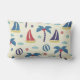 Summer themed throw pillow features palm trees, sail boats and beach balls