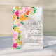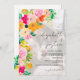 Summer boho floral watercolor photo wedding invitation with pretty hand painted orange, pink flowers and greenery, with a brushed script typography