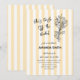 Welcome loved ones to celebrate a bride to be with this fresh off the market bridal shower invitation! Featuring yellow and white cabana stripes with a floral bouquet, this invitation is perfect for those who adore a modern aesthetic with a touch of femininity. It the perfect theme for a summer time bridal shower; especially if its pool side. Fresh, fun, and simply modern are great descriptors of this invitation!