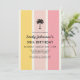 A bright colourful cabana stripes pattern in summer colours of yellow and pink make this 30th birthday invitation pop with coastal style. It's a great choice for parties at the beach, by the pool, or with a summer theme. A single palm tree sketch at the top of the design adds a touch of the tropics. Personalise the text template with your party info. You can change the age to any age! These invitations are available in both printed and instant download digital formats.