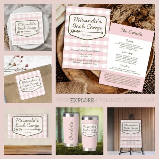 Get ready for an unforgettable girls' weekend in the great outdoors with this Summer Camp Bachelorette Party Invitation & Weekend Itinerary! Featuring a fun pink and green colour scheme with a gingham background, this rustic yet stylish invite sets the perfect tone for a forest, lake, or camping-inspired bachelorette celebration.