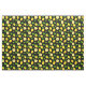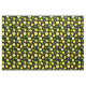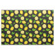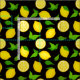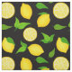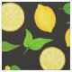 Bring summer into your life with this handcrafted citrus fabric design. It features yellow lemons with green leaves on a black background. Original design by Cute Muse Design.