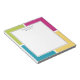 Colourful, stylish SUMMER COLORS Personalised Notepad with cerise pink, banana yellow, cyan blue and lime green quadrants in the background. There is CUSTOMIZABLE TEXT which you can replace with a name. Matching items are available. This no-nonsense, simple design is an ideal addition to your stationery supplies and would make a great Thank You for your favourite teacher during Teacher Appreciation Week