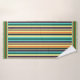 Fun Summer Colour Stripes orange, teal, yellow, tan, green, with alternate striped strip at top and bottom. A great way to add a spring/summer look to your home, cottage, camper and more. We have a great variety of summer coloured decor, tropical florals, leaf themed decor, in a variety of products at Cabana Tropics Decor.