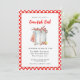 Watercolor Crawfishes with red and white picnic table cloth background perfect for casual summer backyard seafood dinner party.
