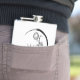 The flask itself is fine. It’s a cheap flask, obviously bought in bulk, however am prepared to overlook that. Given that it is a personalized item, I would have liked to have seen gift boxing instead of the generic packaging. Terrible printing, and/or quality. It’s a cheap, tacky vinyl. It is not cut straight and is also applied in a way that it is overhanging the bottom, causing the glue to catch on items and it will eventually roll and tear, damaging the wrap.