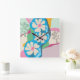 Summer Daisies Colour Blocks Modern Floral Square Wall Clock